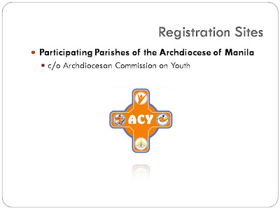 The Archdiocesan Commission on Youth and Archdiocese of Manila Biblical Apostolate, Archdiocese of Manila invites you to the first ever WORLD YOUTH DAY FUN RUN, happening on May 1, 2011, 5:00AM PICC Grounds, Manila.
